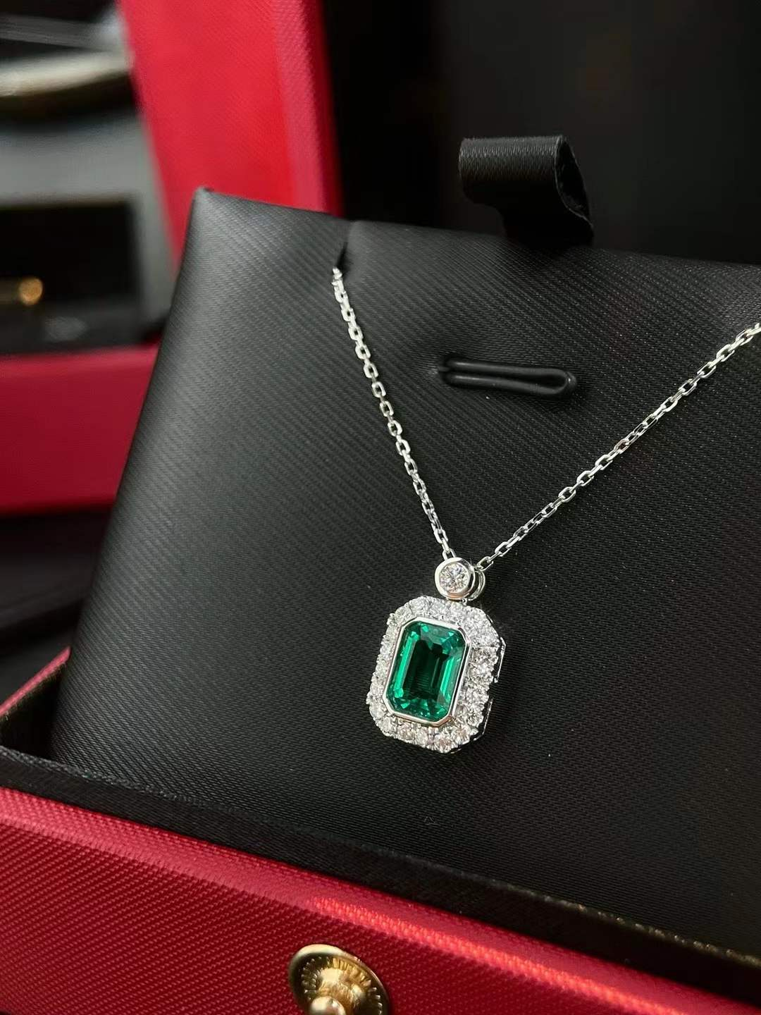 Architectural Precision: The emerald cut is the most demanding of clarity; only the finest stones are selected for this shape. The addition of a round brilliant diamond on the bail adds a final touch of vertical sparkle.