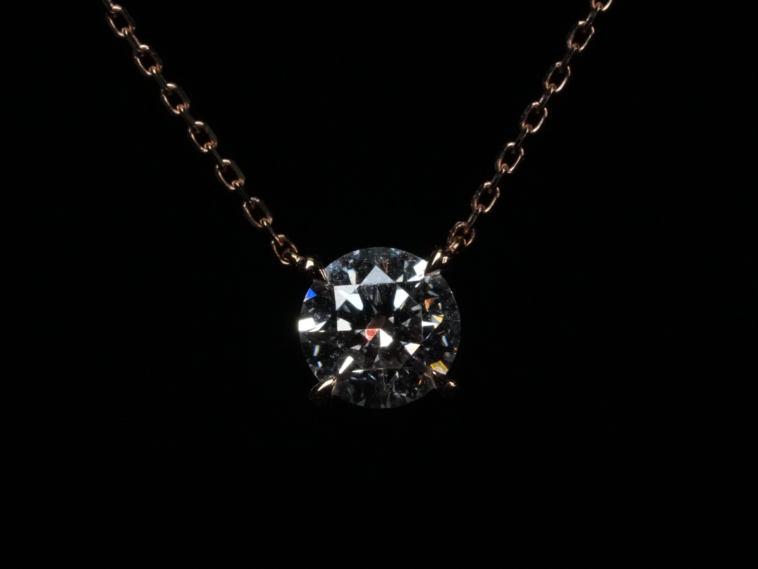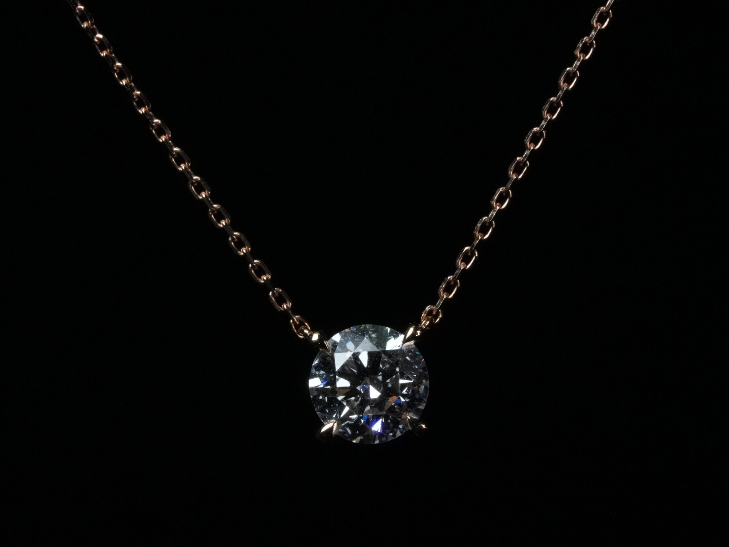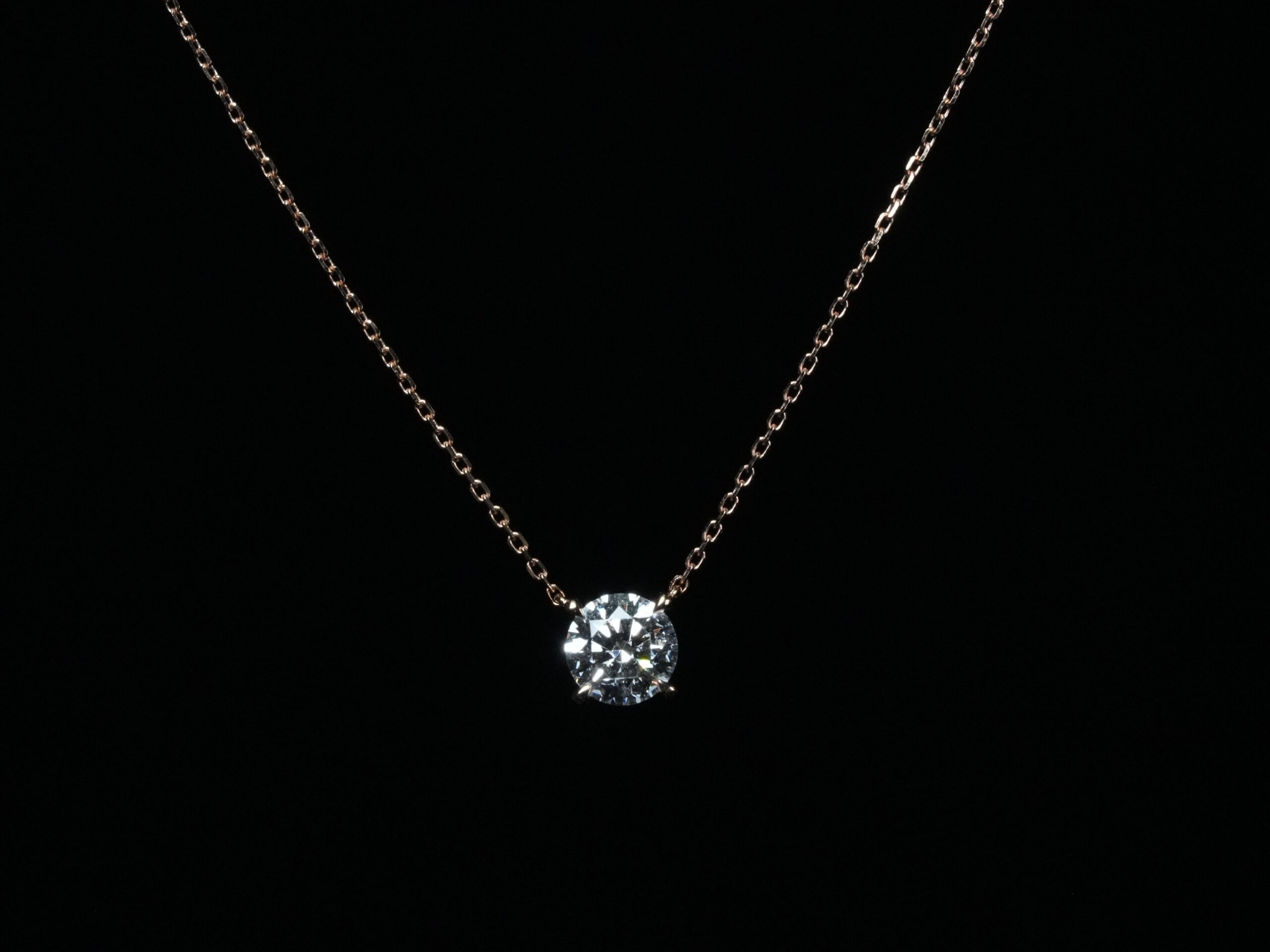 Infuse your look with a touch of warmth and romance. This necklace pairs the timeless fire of a round brilliant-cut diamond with the soft, blushing tones of 18K gold. The contrast between the fiery white diamond and the warm metal creates a unique, feminine glow that complements all skin tones beautifully.