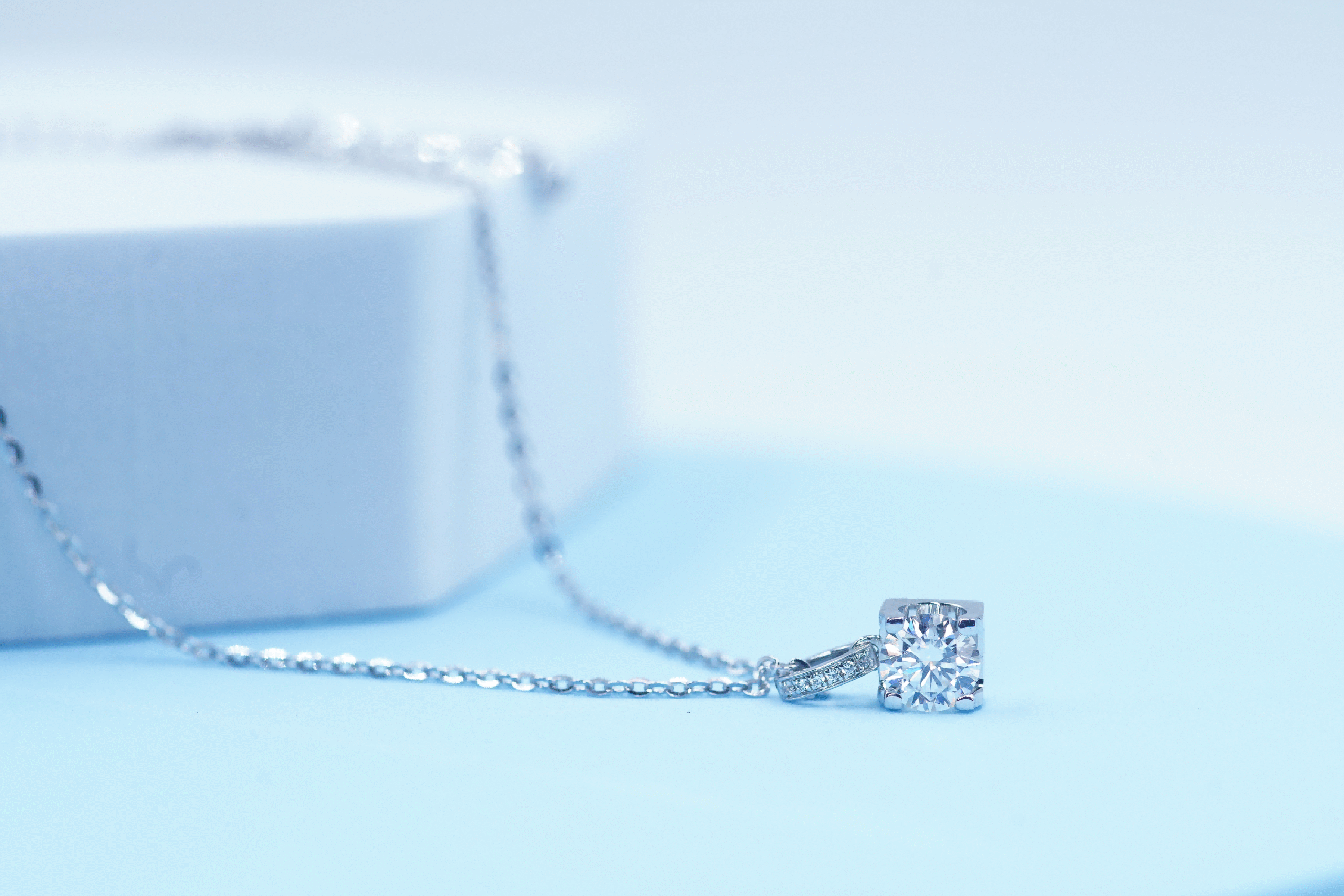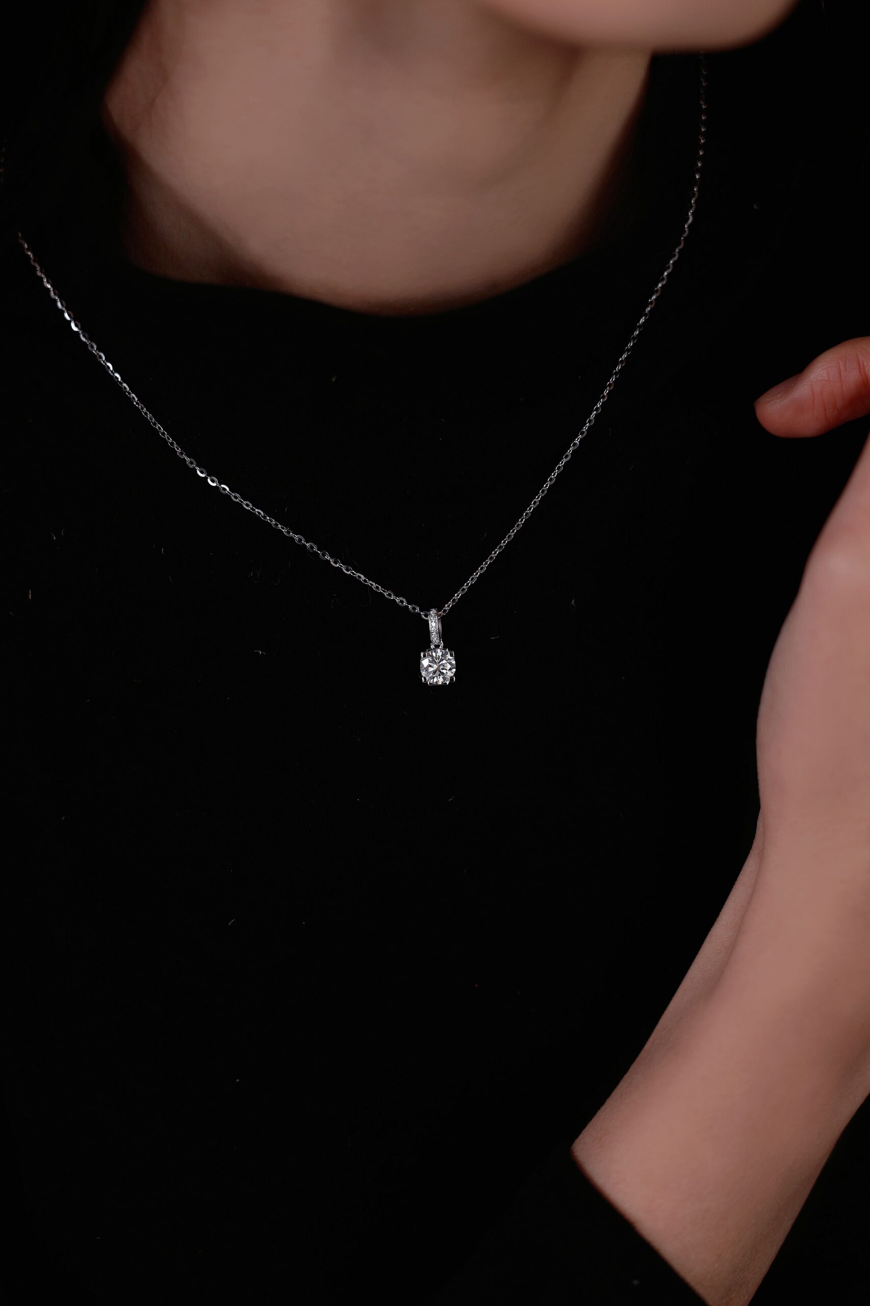 • Elevated Detail: The pavé-set diamonds on the bail add a vertical stream of sparkle, seamlessly connecting the pendant to its elegant white gold chain.