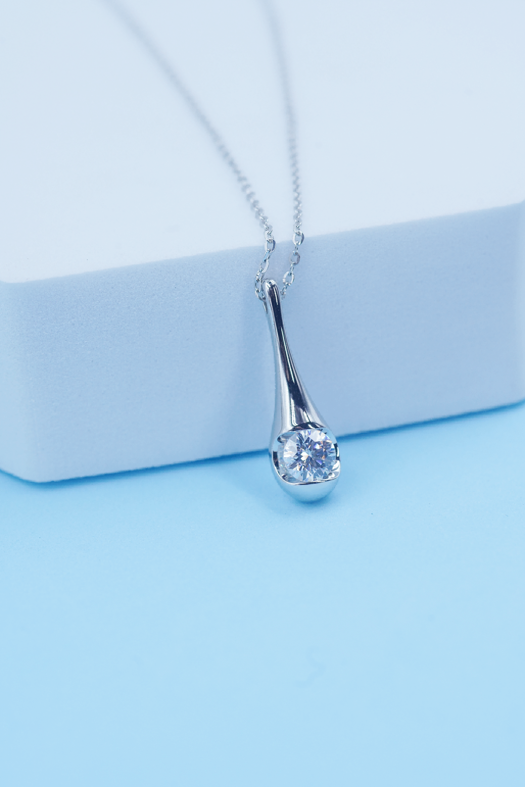 Bezel Set Teardrop Diamond Necklace