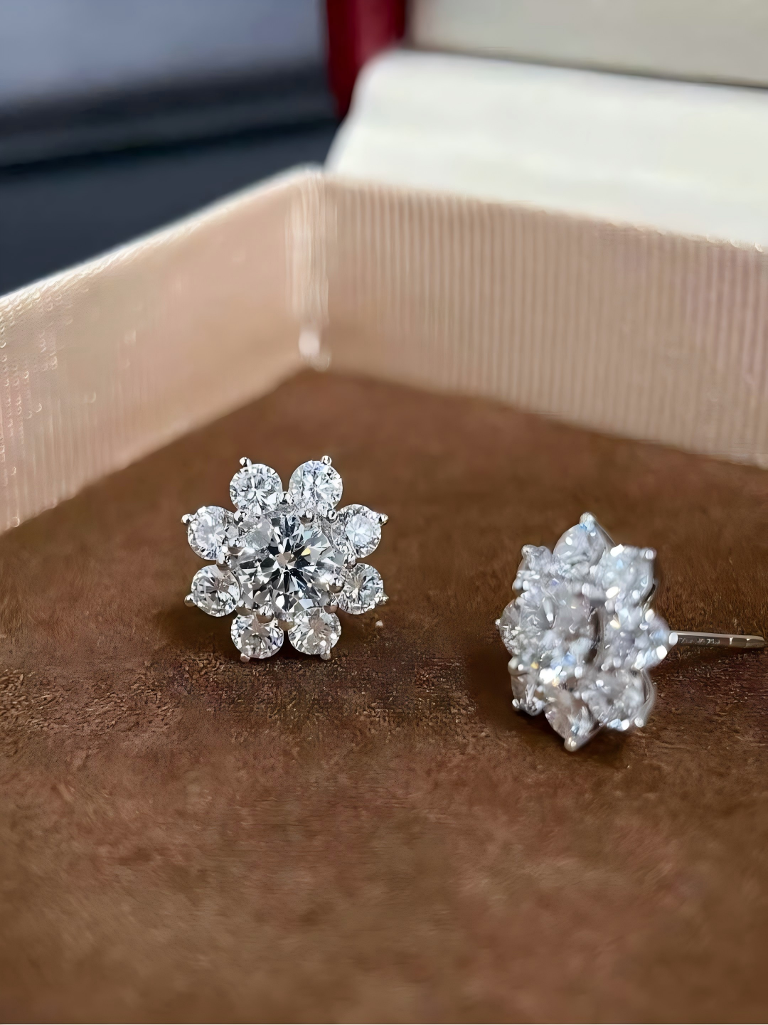 Floral Halo Architecture: The meticulous cluster setting creates a “big diamond” look, offering the visual surface area of a much larger single stone at a fraction of the cost.