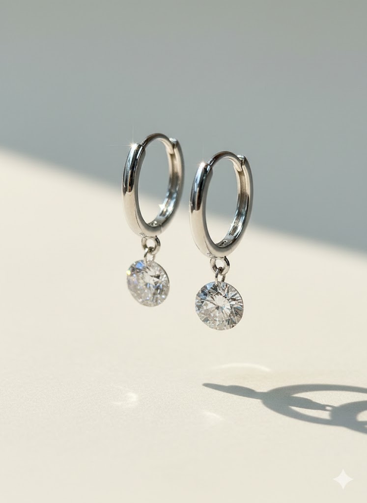 Setting: Floating Drop on Polished Hoops.